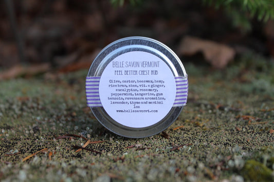 Feel Better Chest Rub 100% Natural- 1oz Travel Size and 2oz Tin-Belle Savon Vermont